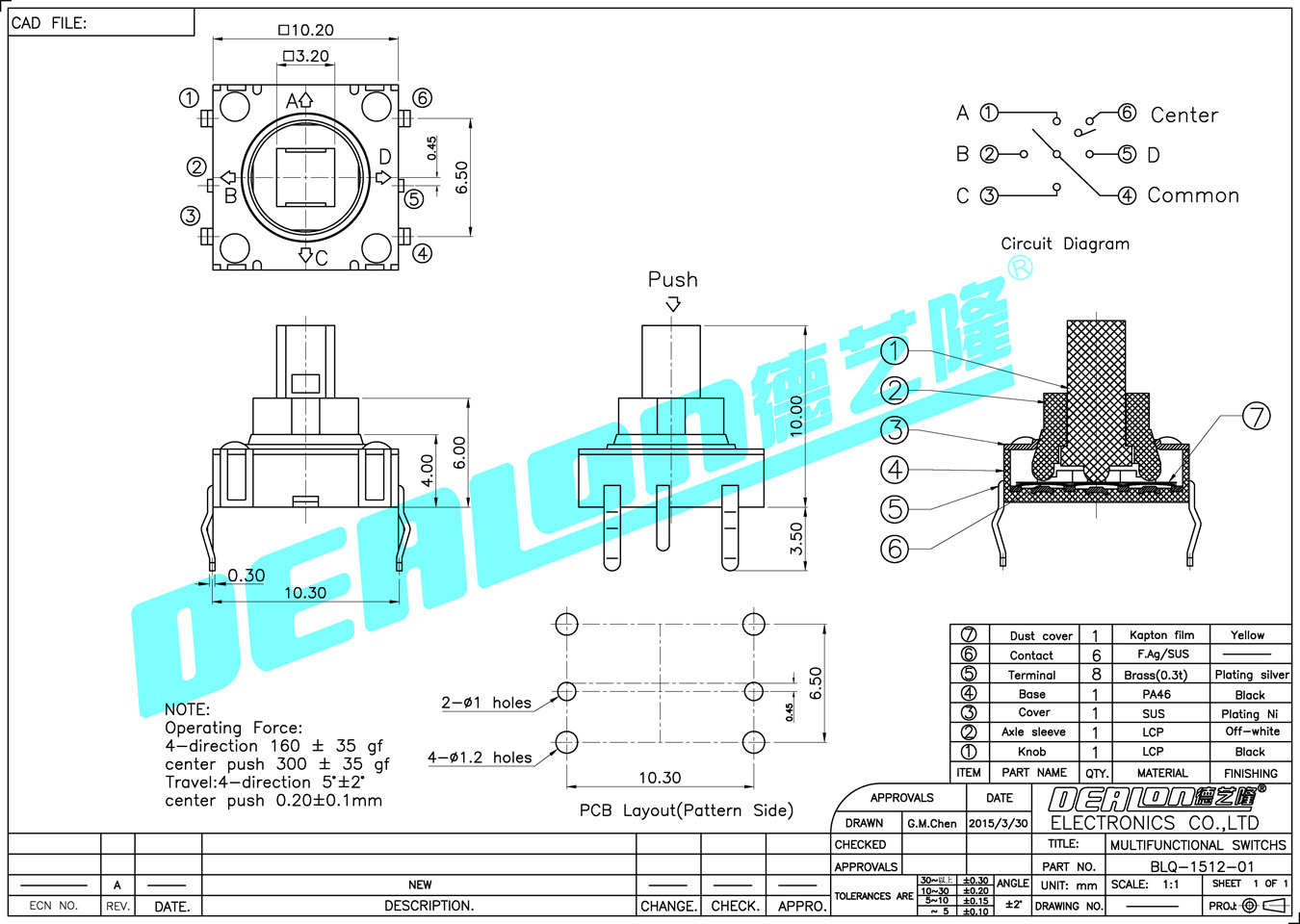 4-direction4°±2° Center push0.2mm±0.1mm