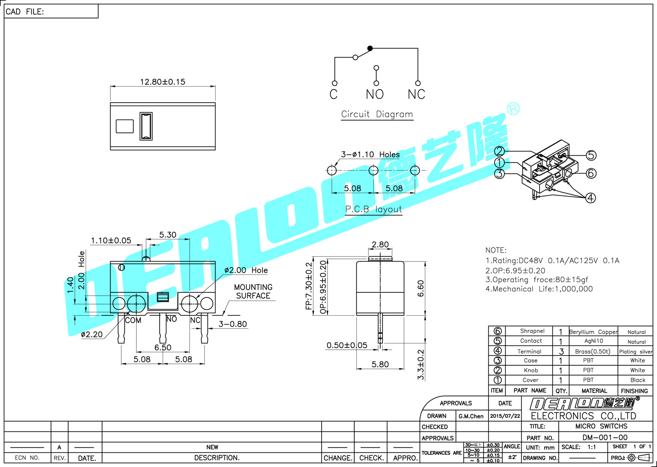 微動(dòng)開(kāi)關(guān) DM-001-01