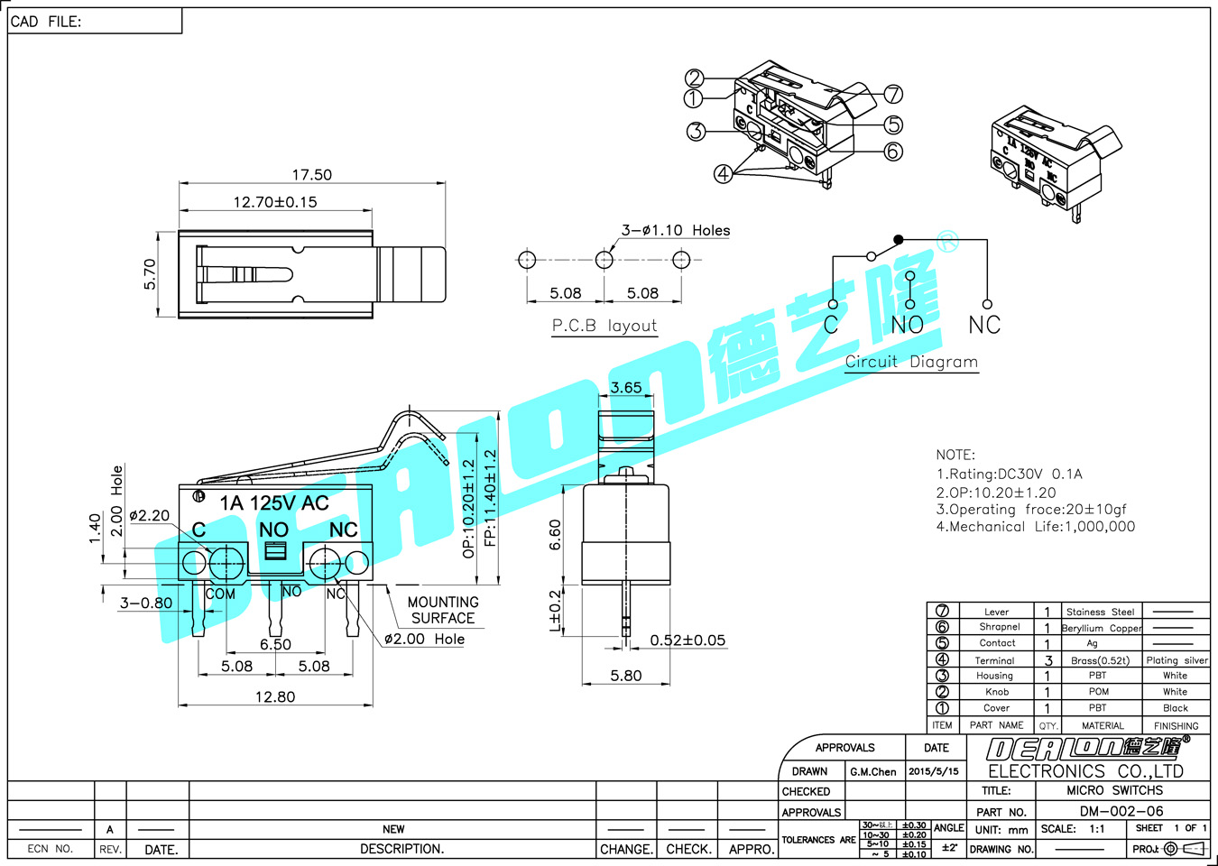 微動開關 DM-002-06